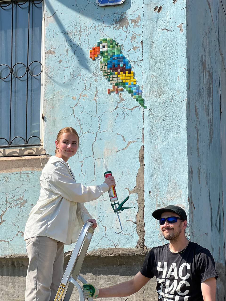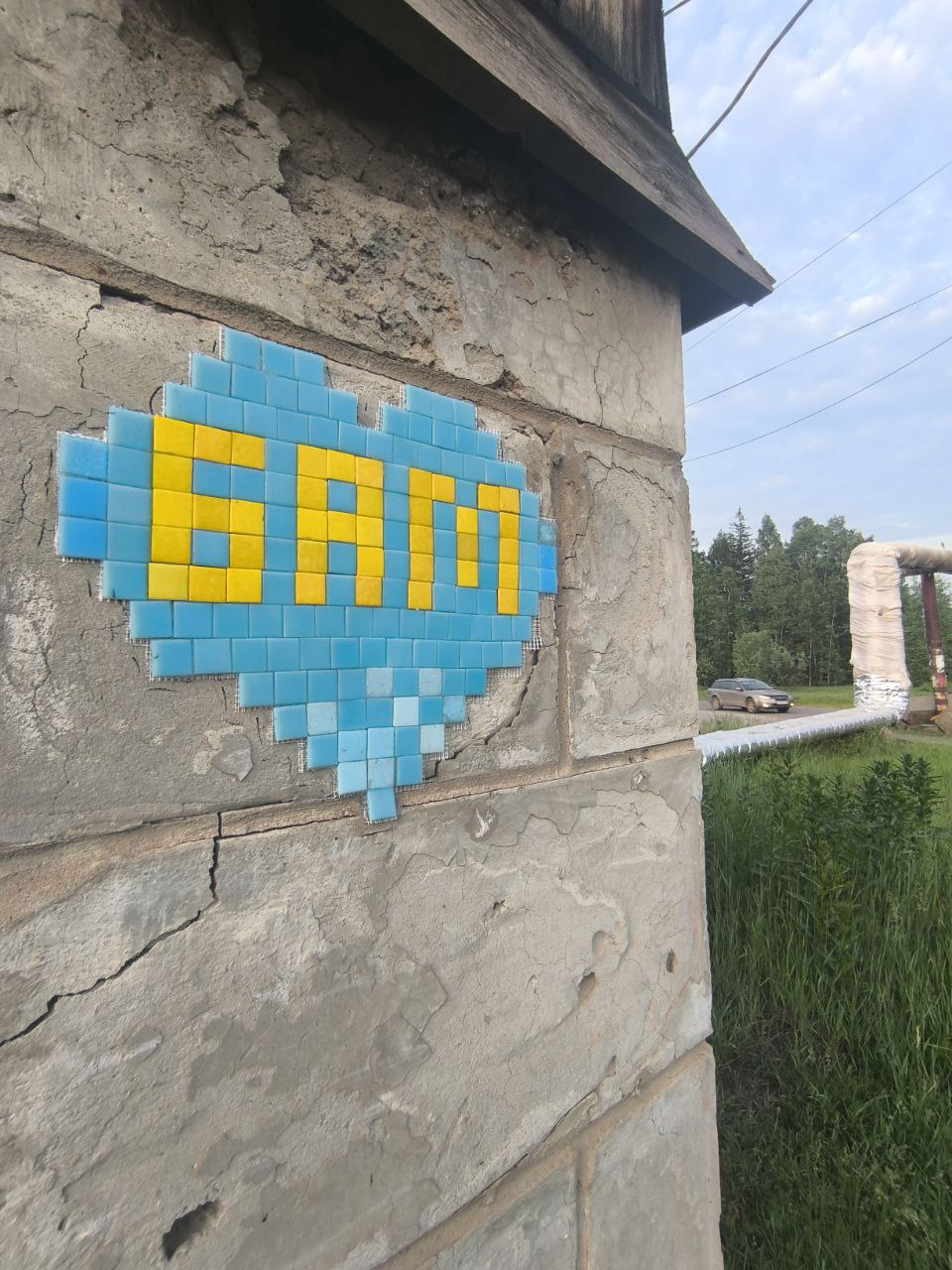 Часть вторая: микро стрит-арт в поселке. Скотч-арт, мозайки и тротуарная плитка!