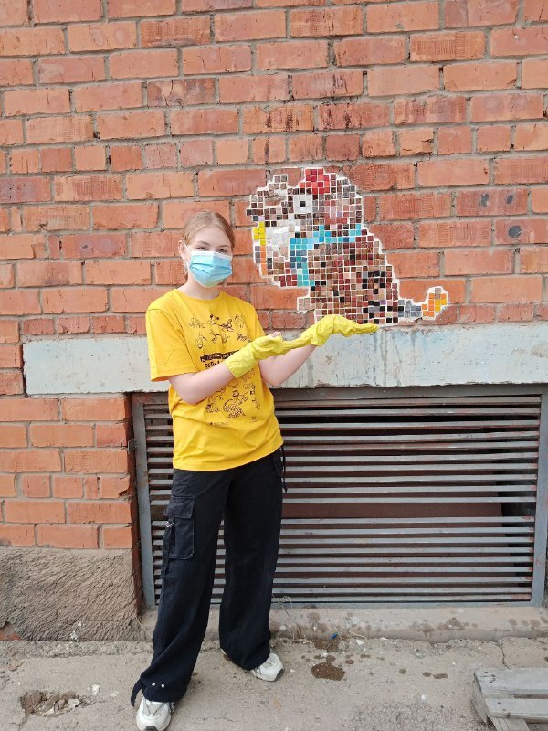 Идеей для работы я вдохновилась примерами византийской мозаики и работами уличных художников которые клеят свои работы по городу в местах где много людей , и каждый житель поселка теперь сможет увидеть и мою работу.